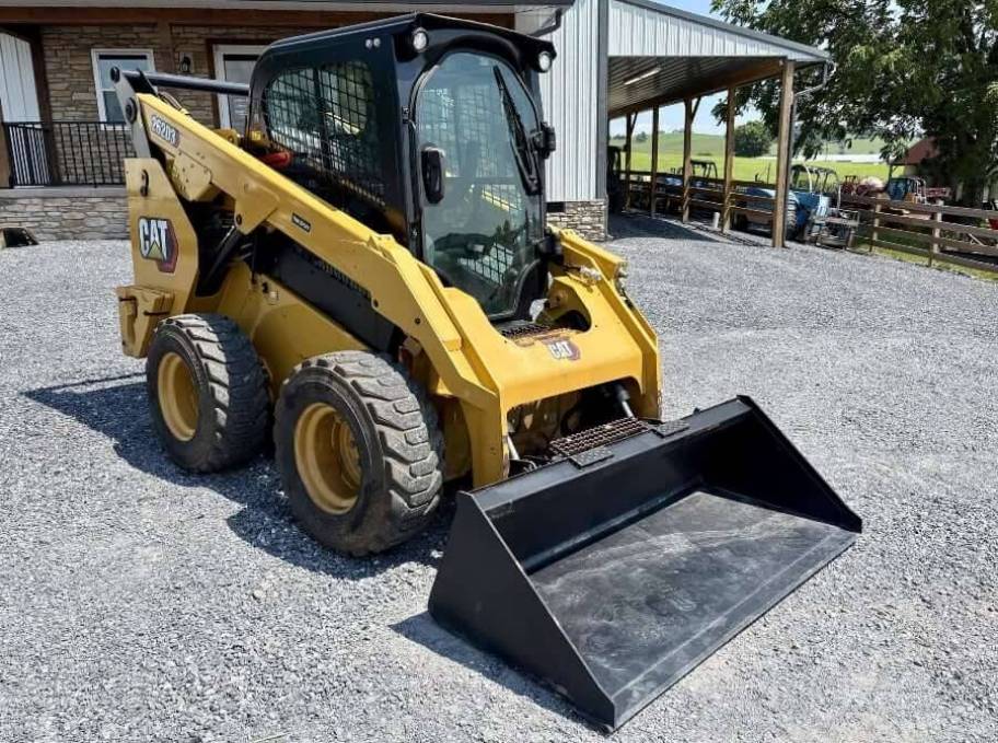 Used 2021 Cat 262D3 Skid Steer Loader with Counterweights (2x 75 lb Caterpillar 345-5147) and 68" GP Bucket. Control Interlock System, when operator leaves seat or armrest raised: n Cat ToughGuard Hose Hydraulic System Disables, Hydrostatic Transmission Disables, Parking n Auxiliary, Hydraulics, Continuous Flow Brake Engages. Operator Warning System Indicators: Air Filter Restriction, Alternator Output, Armrest Raised/Operator Out of Seat, Engine Coolant Temperature, Engine Oil Pressure, Glow Plug Activation, Hydraulic Filter Restriction, Hydraulic Oil Temperature, Park Brake Engaged, Engine Emission System.