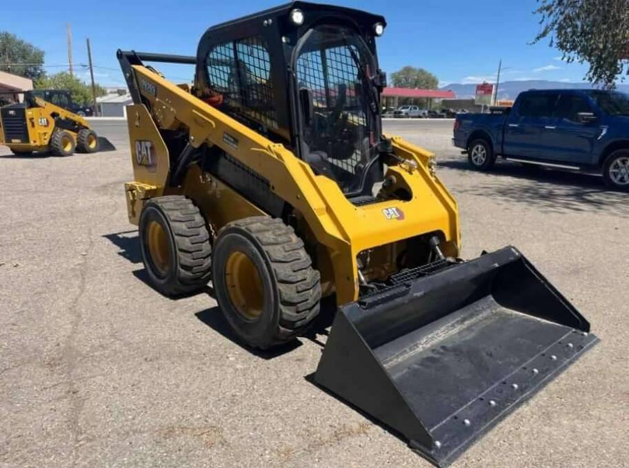 Used 2024 Cat 262D3 Skid Steer Loader with Counterweights (2x 75 lb Caterpillar 345-5147) and General Purpose Bucket (279-5369, 68 in, Bolt-On Cutting Edge). High Flow XPS hydraulic system is available for applications that demand maximum hydraulic work tool performance. Speed Sensitive Ride Control improves operation on rough terrain, enabling better load retention, increased productivity and greater operator comfort.