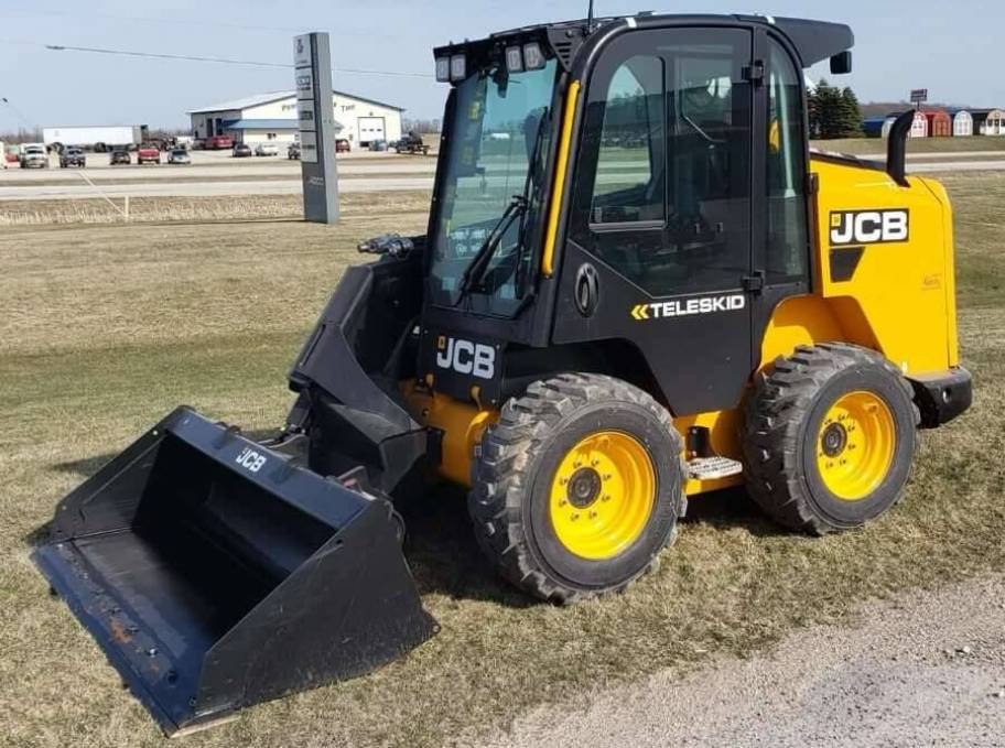 New 2025 JCB 3TS-8W Teleskid Skid Steer Loader with Telescopic Boom. High flow aux hydraulics. 2-speed travel with creep speed and Smoothride System (SRS). Pressurized enclosed cab with HVAC. Selectable ISO or Dual hand control/H pattern 7-way joystick control with attachment harness. Powered bucket quick attach.