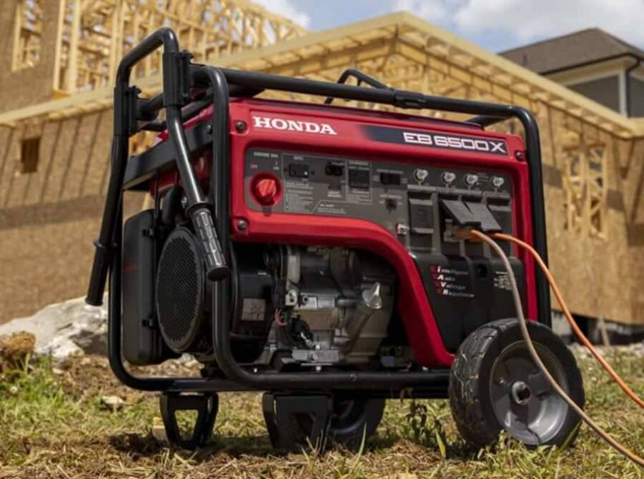 New 2026 Honda EB6500X Industrial Portable Generator (60 Hz) with CO-MINDER. AC Output = 120/240V 6500 W maximum (54.1/27.1A) / 5500 W rated (45.8/22.9A). iAVR Output = 7000 W (58.3/29.2A) for 10 sec. Receptacles: 20A 125 V GFCI Duplex (2), 30A 125 V Locking Plug, 30A 125/250 V Locking Plug. The Honda EB6500 X runs approximately 9.8 hours at half load and 6.4 hours at full load.