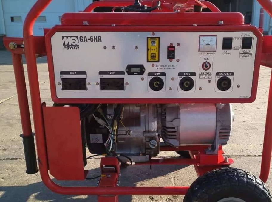 Used 2019 Multiquip GA6HR Portable Generator (60 Hz, Brushless Revolving Field Type). Twin duplex receptacles and three T-Lock receptacles for job site versatility: 1x L5-20R 125V T-Lock 20A; 1x L5-30R 125V T-Lock 30A; 1x L14-30R 125/250V T-Lock 30A; 2x 5-20R 125V GFCI 20A. Full panel GFCI protection - OSHA and NEC compliant.