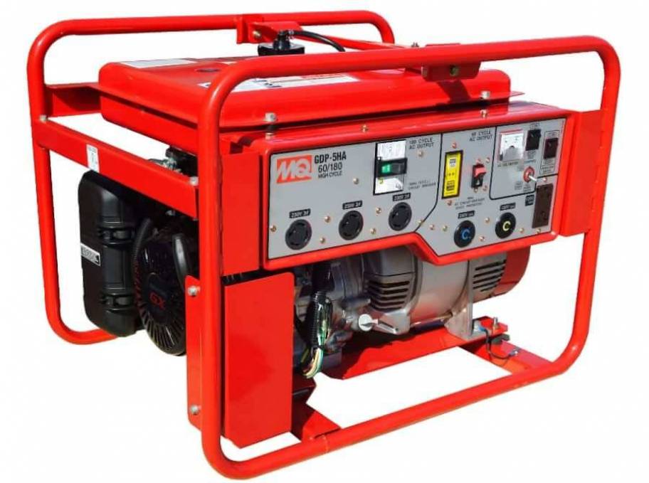 New 2026 Multiquip GDP5HA High-Cycle Portable Generator (4kW - 60 Hz / 5kW - 180 Hz). Powered by a Honda GX340 gasoline engine this unit takes the place of two generators. Continuous Amps = 30A @ 120V / 15A @ 240V. Maximum Amps = 33A @ 120V / 16.5A @ 240V. Ideal for the professional contractor. Circuit Breakers = 60Hz - 30 A; Number of Poles 60Hz - 2 / 180Hz - 3; 1 Receptacle of Each = L6-20R 250 V T-Lock 20 A / L5-30R 125 V T-Lock 30 A; 3 Receptacles of Each - NEMA 7410 230 V T-Lock 12.5 A.