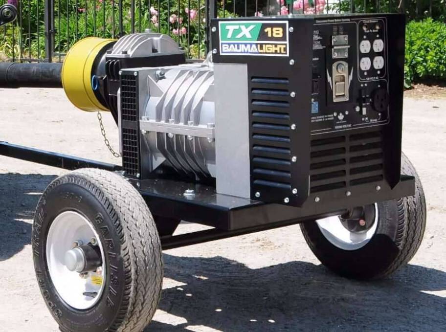 New 2026 BaumaLight TX18 PTO Generator. 60 Hz, 2-Pole, 540 RPM Power Take Off input, single-phase. Includes two 20 A duplex outlets and one 50 A welder socket. Required Tractor HP: 10 HP - 50 HP. Capacitor regulation ensures constant voltage under load variations.