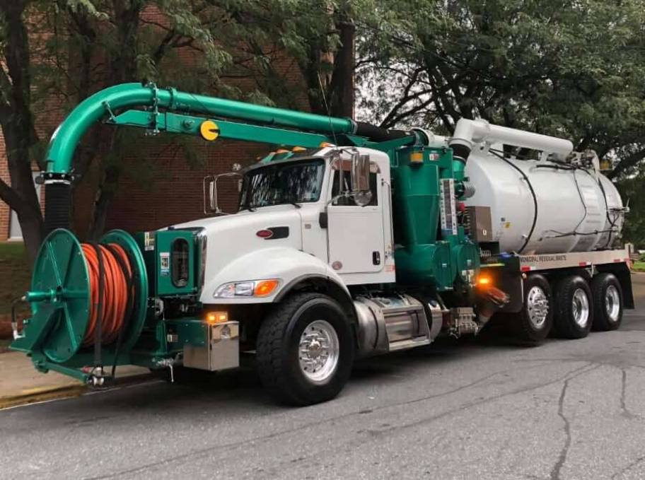 New 2018 GapVax MC1512 Combination Sewer Cleaner on Peterbilt 348 Truck. Front Hose Reel with hydraulically powered direct-drive gearbox. Double acting lift cylinder that provides a stable 50° dump angle for fast unloading and easy clean-out.