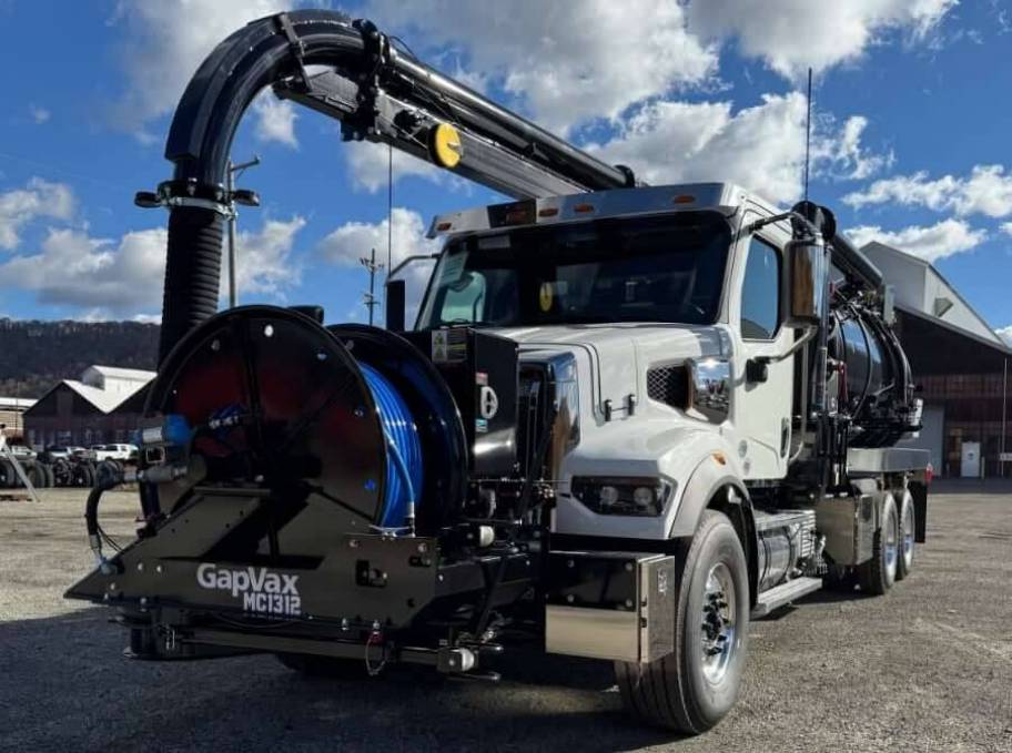 New 2026 GapVax MC1312 Combination Sewer Cleaner JetVac on Western Star 49X Truck 6x4. Double acting lift cylinder that provides a stable 50° dump angle for fast unloading and easy clean-out. Full opening tailgate with four fail-safe locks; locks are "field-adjustable" with a simple wrench. 3,000 psi Giant Industries hydro excavation package; Cold weather recirculation with glcyol injection.