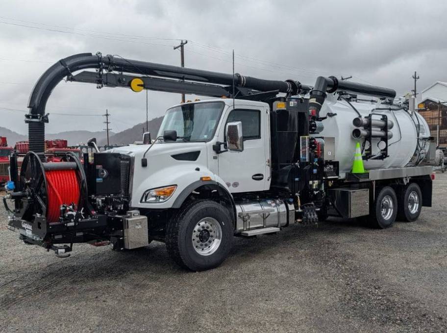 New 2026 GapVax MC1510 Combination Sewer Cleaner on Kenworth T480 6x4 Truck. Transfer case mount is vibration isolated with four isolators. Ultra quiet specifically engineered absorption silencer. Air passes through a final micro-screen strainer before entering the blower.