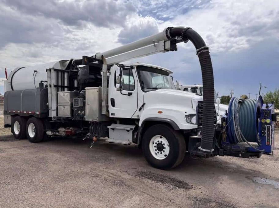 Used 2019 Sewer Equipment Co. of America 900 ECO Combo Sewer Cleaner on 6x4 Freightliner 114SD Truck. SECA Model 900 with Cold Weather Recirculation System + Triplex Plunger Water Pump w/ 30 Minute Run-Dry: 65 GPM @ 2000 PSI.