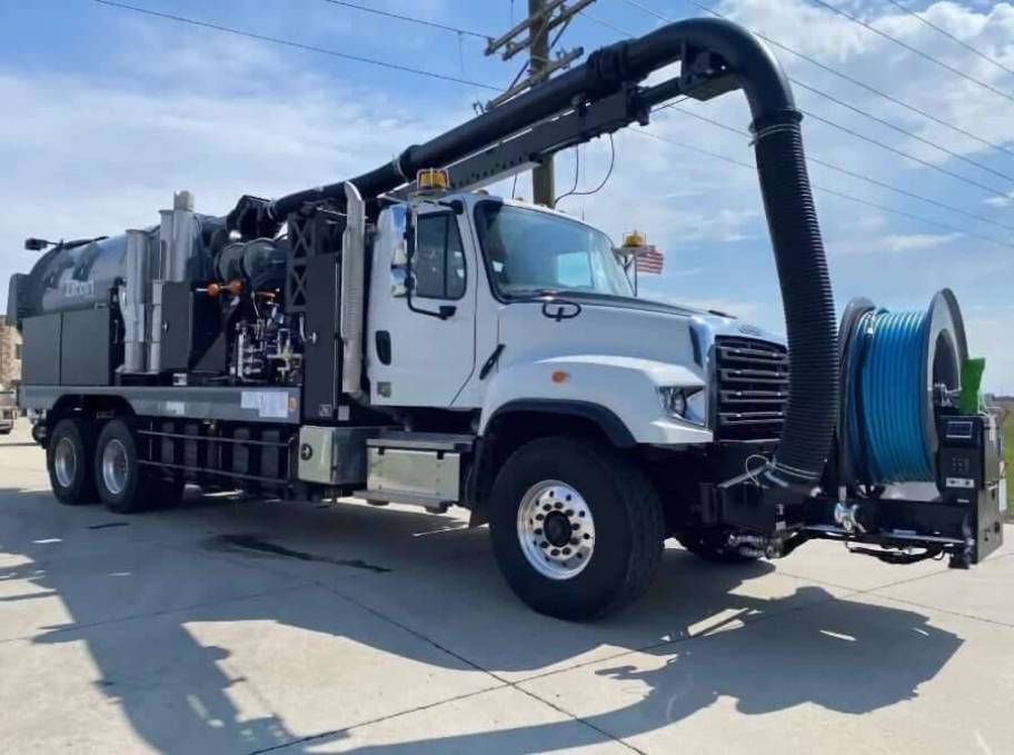New 2025 Vac Con Titan Combination Sewer Cleaner (Dual Engine) on 6x4 Freightliner 114SD Truck. Aeroboost 3-stage fan with quiet drive. Omnibus Precision Power System (OPP)-Electronic Controller System-Includes: a color monitor, electronic footage counter, and pressure compensated hydraulics. Low water alarm with light. Remote control (wireless): boom, vacuum breaker, throttle & debris body. Traffic camera with color monitor – rear and front hose reel camera placements.