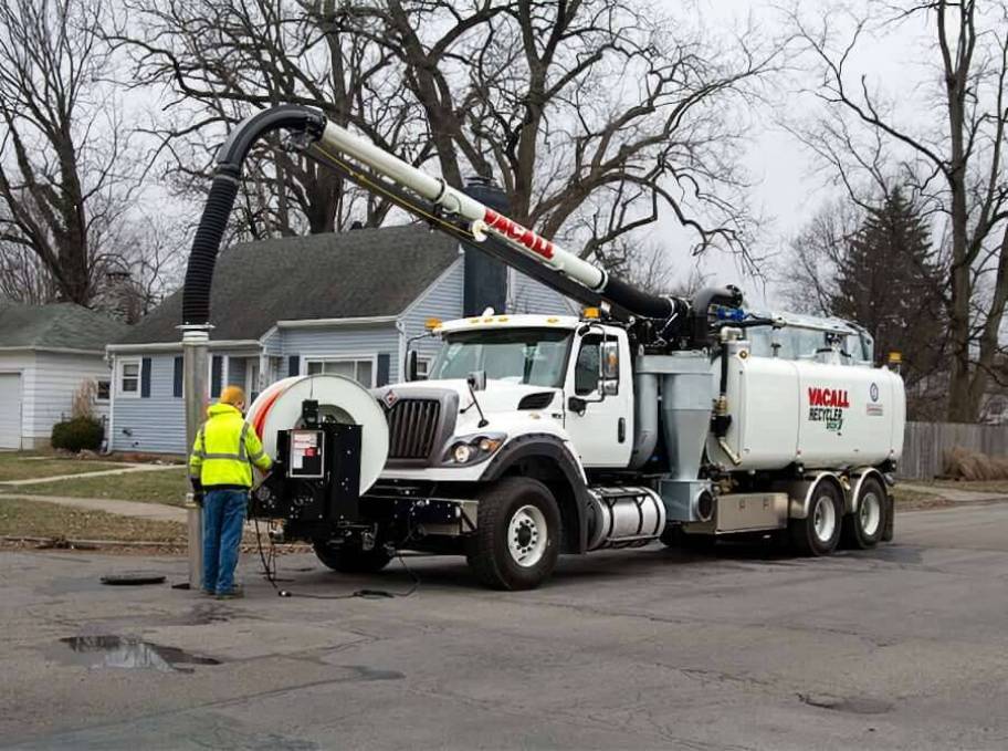 New 2026 Vacall AllJetVac Recycler P Series on 6x4 International HV613 SBA Truck. Located in the front of the debris tank for protection against stones and other vehicles, the Recycler system also includes a 240 gal segregated clean water tank section attached to a 10 gpm pump and 50' hose reel for wash down. Water moves through high-speed centrifugal action process to remove remaining tiny particles as small as 100 microns.
