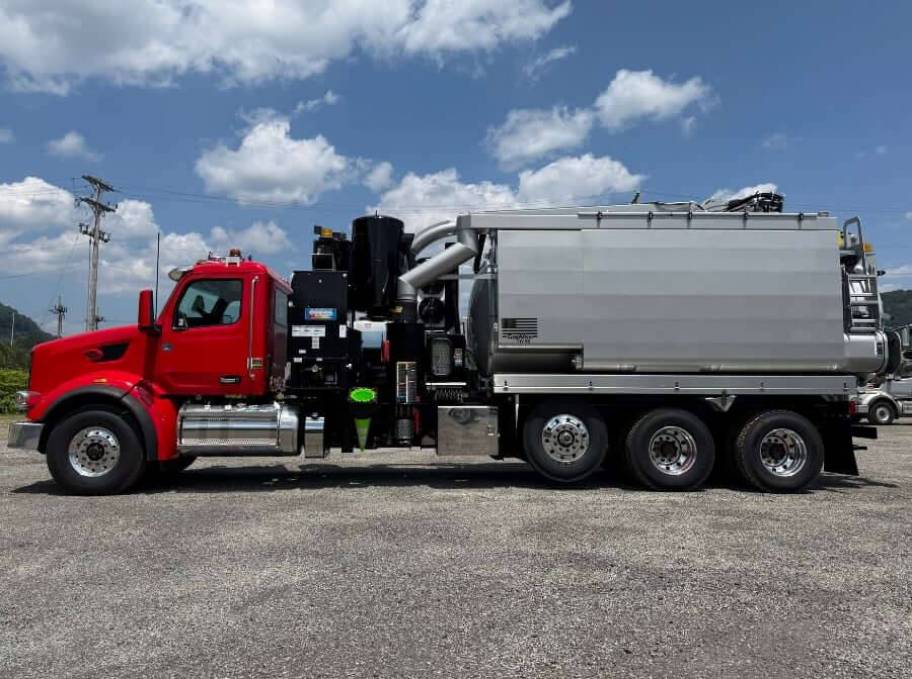 New GapVax HV55 HydroVax Vacuum Excavator on Peterbilt 567. The tri-plex water pump is direct-shaft driven via the transmission PTO. Compressed air flow - 200 cfm / air pressure - 200 psi.