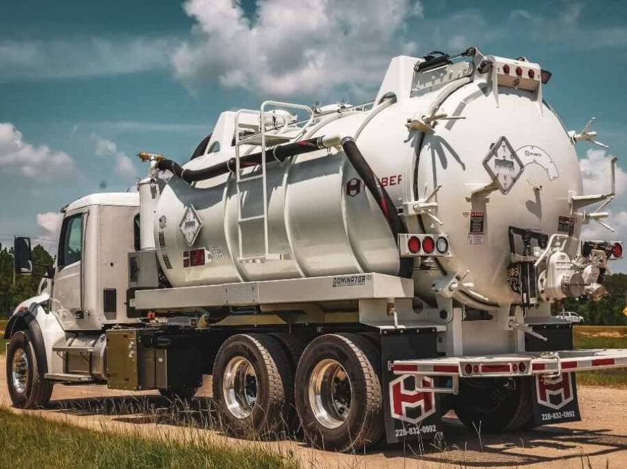 New 2026 Huber Dominator PD Industrial Vacuum Truck on Peterbilt 548. Optional water package: 10 GPM @ 2,500 psi or 20 GPM @ 2,500 psi with 300 or 500 gallon water tank. Hydraulically opening rear door with integrated safety valve.