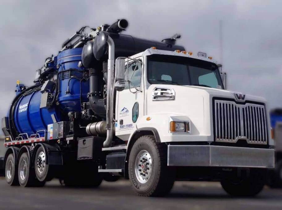 New 2026 Ramvac Tempest Industrial Vacuum Truck on Western Star 4700SB 8x4. With a standard 50-degree dump angle and 50-inch clearance from splash plate to the ground, this air mover machine allows for the easy and effective offloading of material into roll-off containers or any desired dump locations.